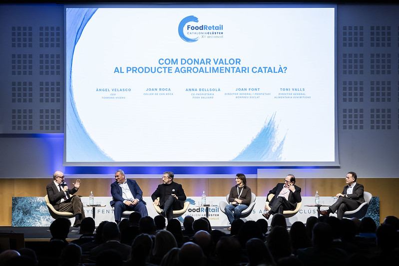 A continuació, la taula rodona “Com donar valor al producte agroalimentari català?”, moderada per Antoni Bassas, ha reunit Joan Roca (El Celler de Can Roca), Anna Bellsolà (Forn Baluard), Joan Font (Bonpreu), Toni Valls (Alimentaria Exhibitions) i Àngel Velasco (Torrons Vicens), que han compartit visions complementàries sobre origen, qualitat i diferenciació del producte fet a Catalunya.